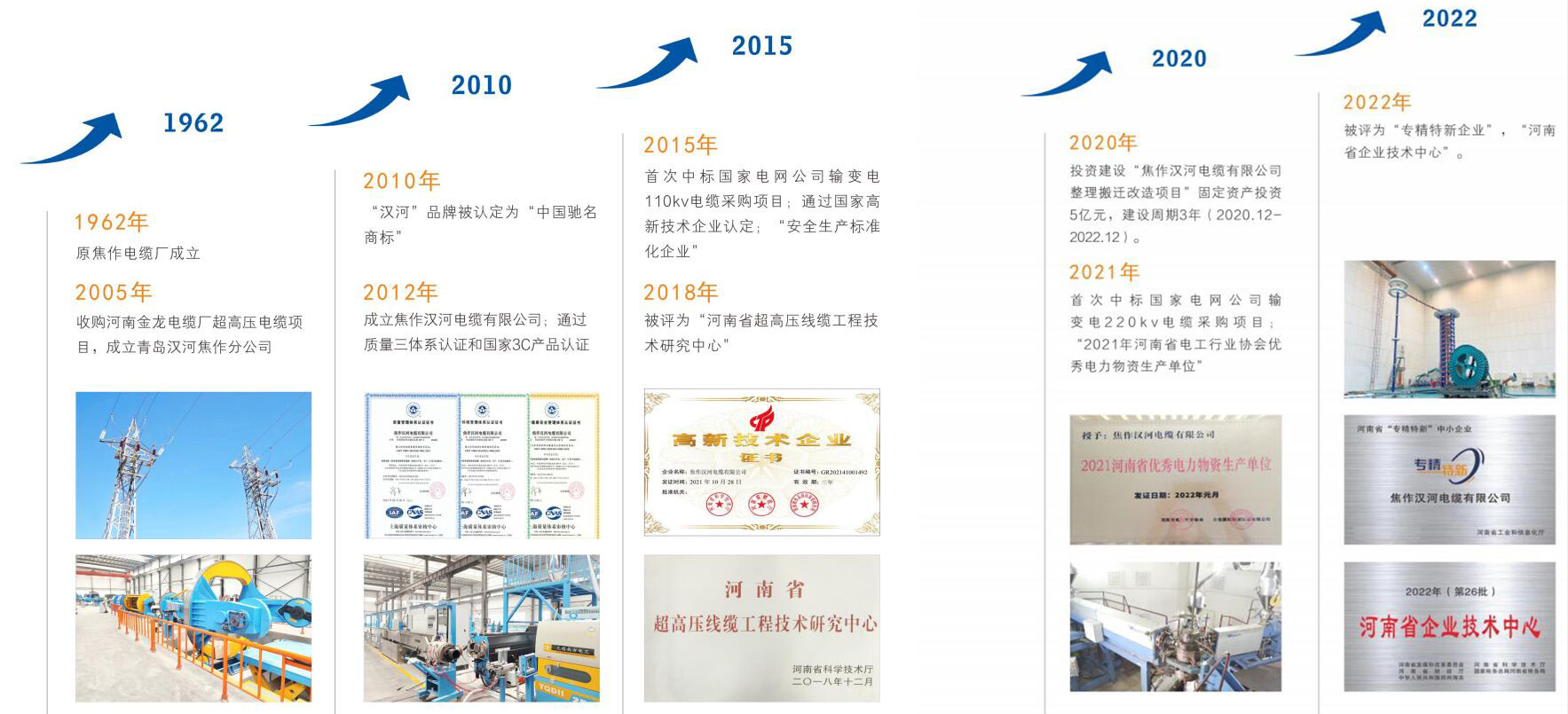 2005年 收購河南金龍電纜有限公司超高壓生產(chǎn)廠區(qū),成立青島漢河電纜焦作分公司,開始研發(fā)生產(chǎn)110kV--220kV高壓電纜。